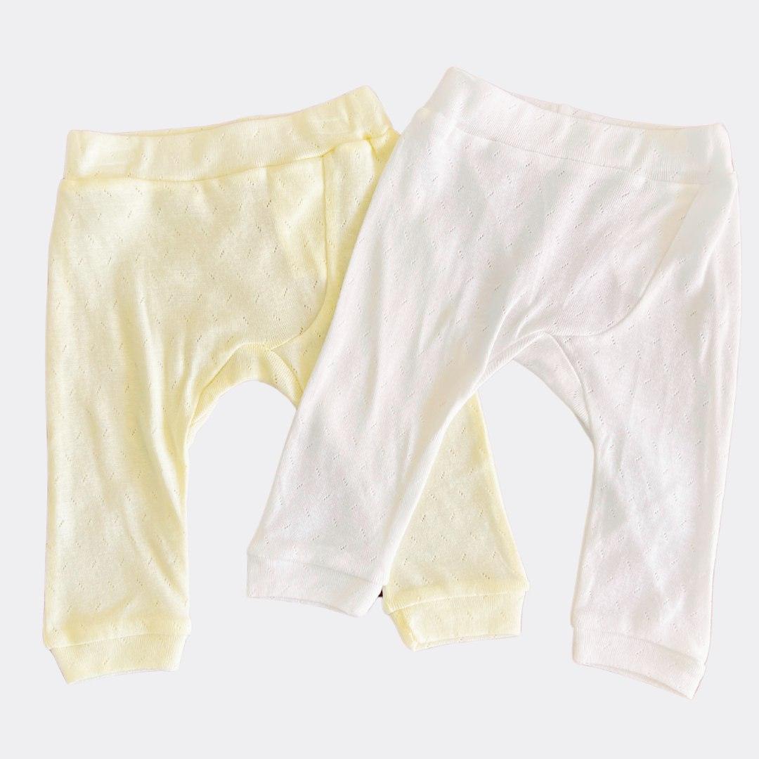 Yellow And White Organic Cotton Pant Pack Of 2 Pieces