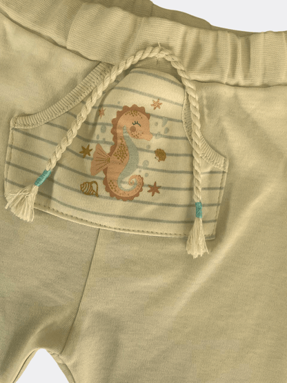 "Get ready to dress your little one in the comfiest pants ever! Made from ultra-soft organic cotton, these beige pants are perfect for everyday wear. With a cute and simple design, they are versatile and unisex. Your baby will love being dressed in these!"