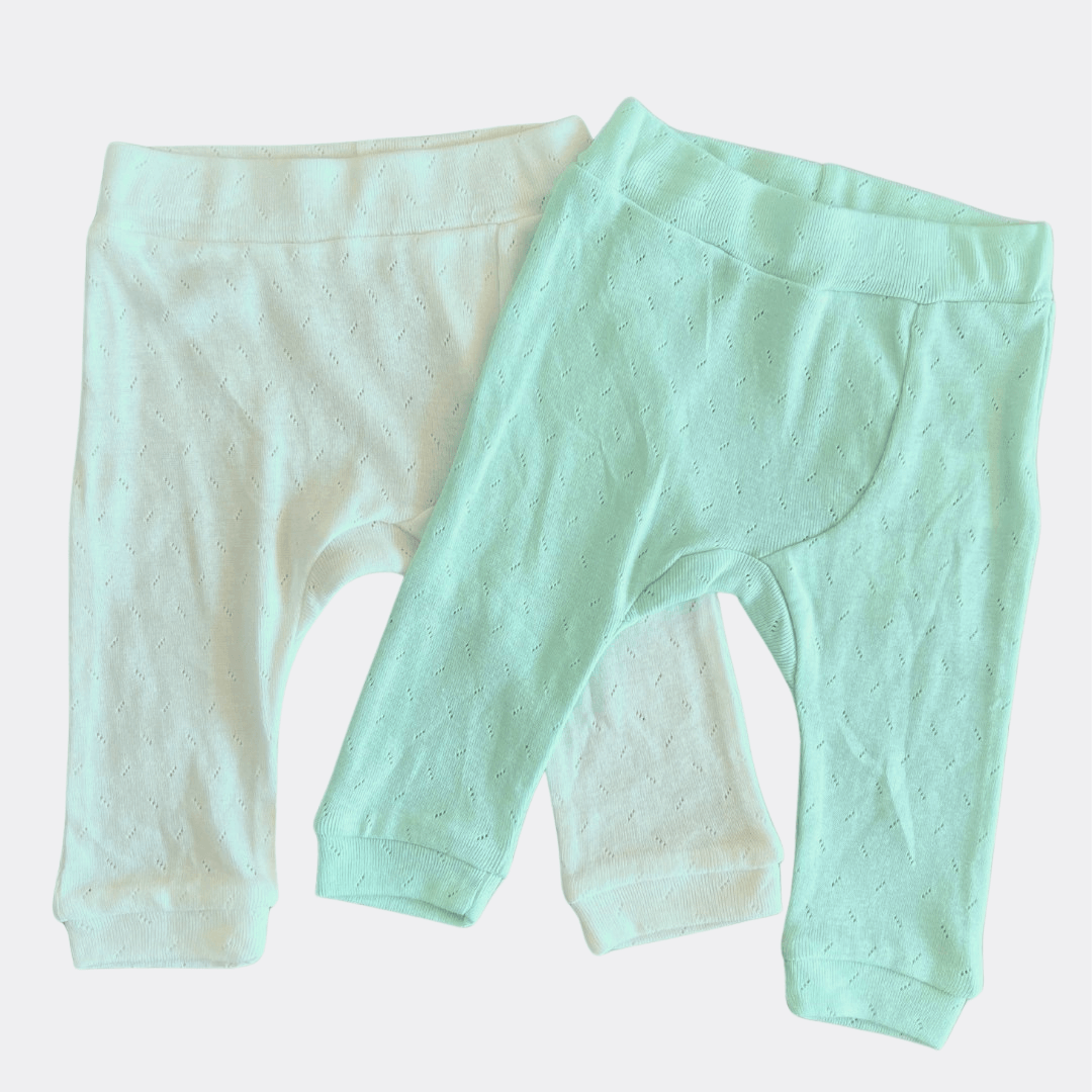 Mint Green And White Organic Cotton Pants Pack Of 2 Pieces